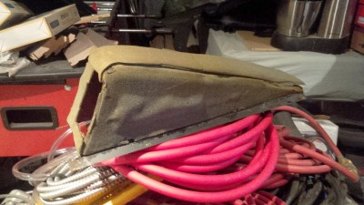 After the gauges were complete, I selected my armrest as the next piece to get attention. I want the interior of the car to be a light tan, as I believe it would look gorgeous with a black exterior. I have viewed similar interiors and have loved the result. I drove over to Len’s Mills and picked up foam, vinyl, and piping for the seams. All together, it cost me a little over $50 for a 52″ x 4 yard sheet of tan vinyl, 4 yards of piping and a large 1″ x 30″ x 30″ piece of foam. I came home and stripped the armrest of the existing vinyl and took it apart to make a pattern for the new pieces. The metal structure underneath was sandblasted, primed and painted black. It will not be seen, but the paint looks flawless.
