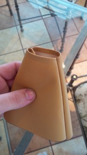 I have never sewn before, so my mom taught me the basics. I made myself an e-brake boot and the new cover for the armrest. I sprayed on some adhesive, padded the tops and the side of the armrest and then attached my cover.