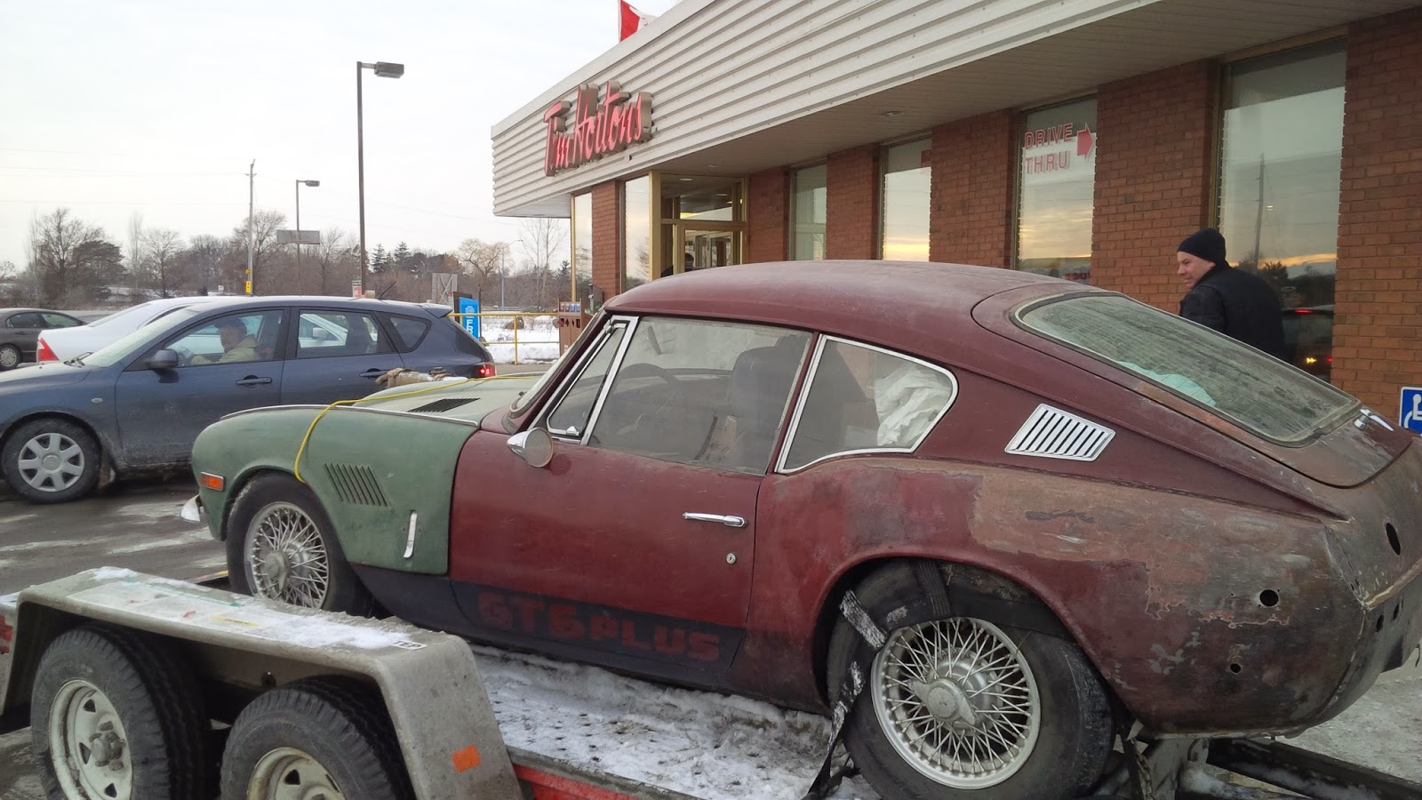Our trip wasn’t over yet, we still had to make our way back into Cambridge. Road conditions couldn’t have been better; there wasn’t a patch of ice, water or dirt our entire way back… until we hit Cambridge of course. Roads were indescribably bad but with my dads careful piloting, he was able to get the car safely home, after locking up the brakes on the last turn to our house. More hours of unloading and returning the trailer to the rental location followed us and brought us into nightfall. We had spent a couple of hours cleaning the garage during the previous night to fit the Triumph, what little space it takes up at least. It was finally here – after months of anger, patience, ripping out my hair, and stress.