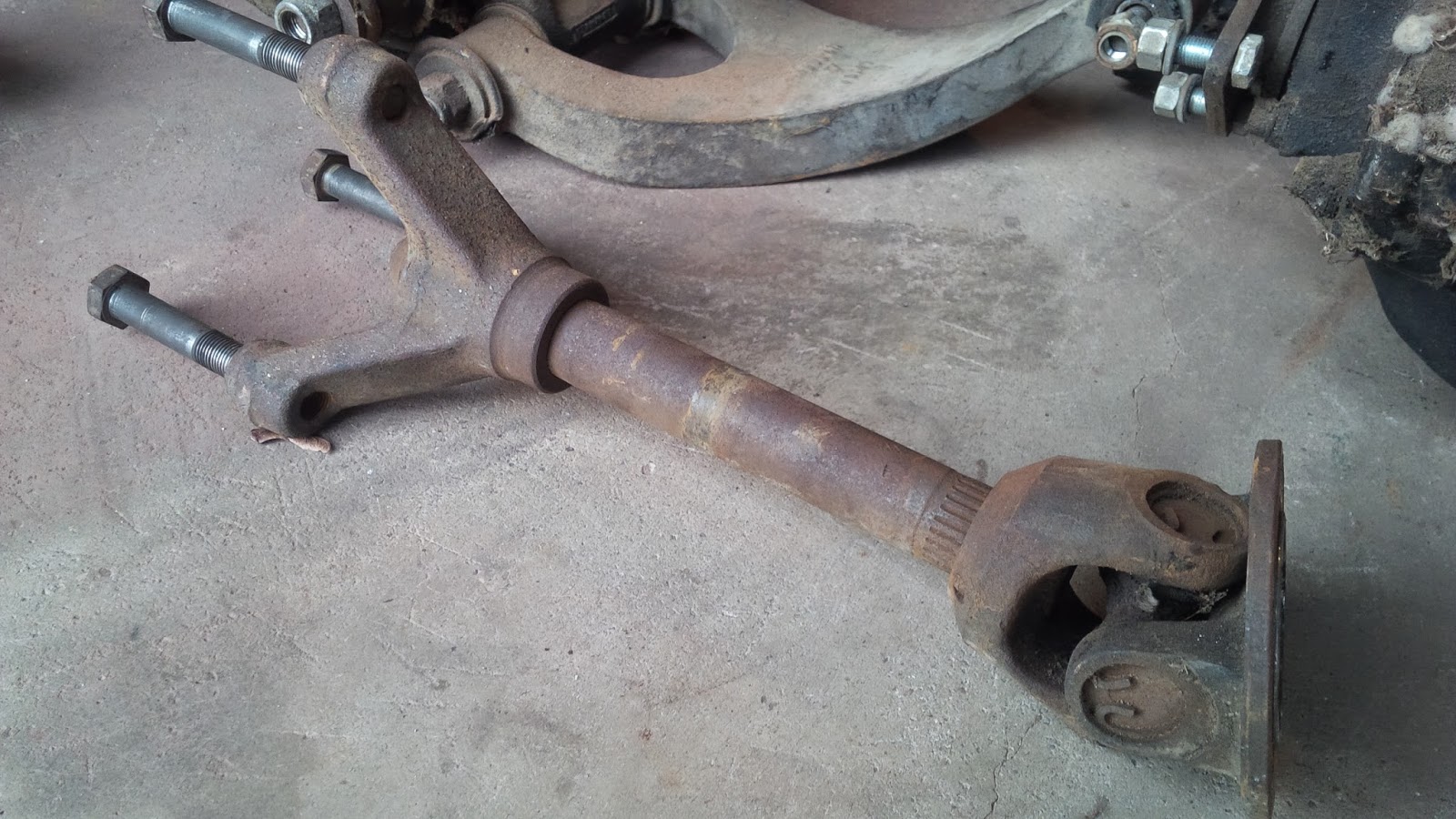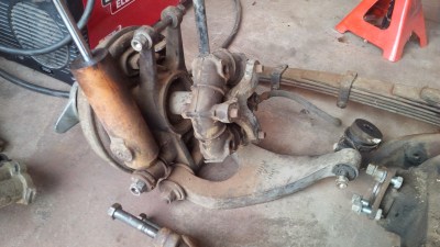 After the leaf spring was removed, I took the axles out followed up the removal of the rear control arms. I decided to keep each hub assembly together, as I believe it is much easier for organization and cleanliness in the garage. It should be noted that I removed the drive shaft earlier on before any of the dis-assembly occurred.