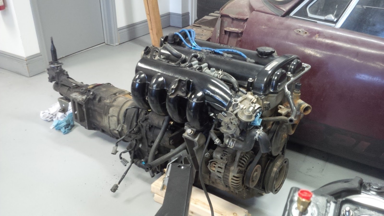 Restomodders rejoice! It’s here, delivered and leaky. Mike and I spent a bit of time a couple of weeks ago ripping the drive train out of his Eunos Roadster (MX-5 Miata) so we can both continue building our pieces of junk.