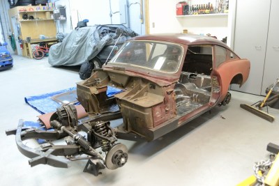 Today was an exciting day at the shop! I was able to get a ton of work done today which included finishing off all of the floor pan wire wheeling, cleaning up the shop a little bit and removing both doors and the rear trunk lid.