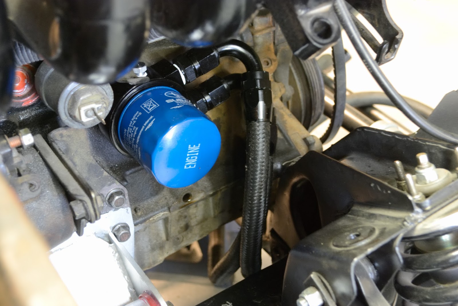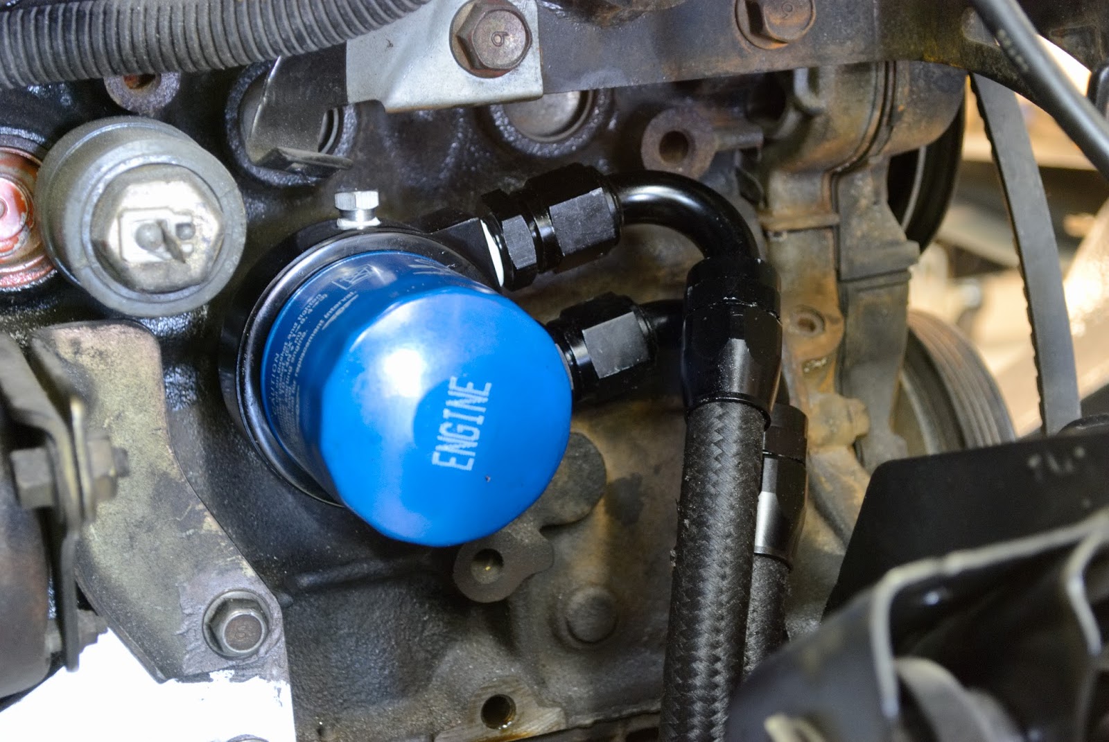 My oil cooler sandwich adapter came in today, two weeks early. This never happens. I took some time to throw it onto the motor after work today.