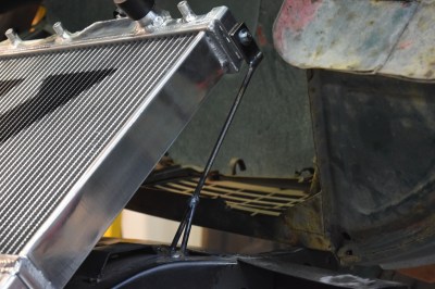 We debated on how I should made the top mounts. Being the impatient person I am, I decided to work with what was available. For a… let’s just say a project I’m not going to mention, Joe had some metal rod laying around the shop which had the mill scale already taken off of it. Seeing as the top rad supports see very little load, they don’t need to be made out of billet steel.