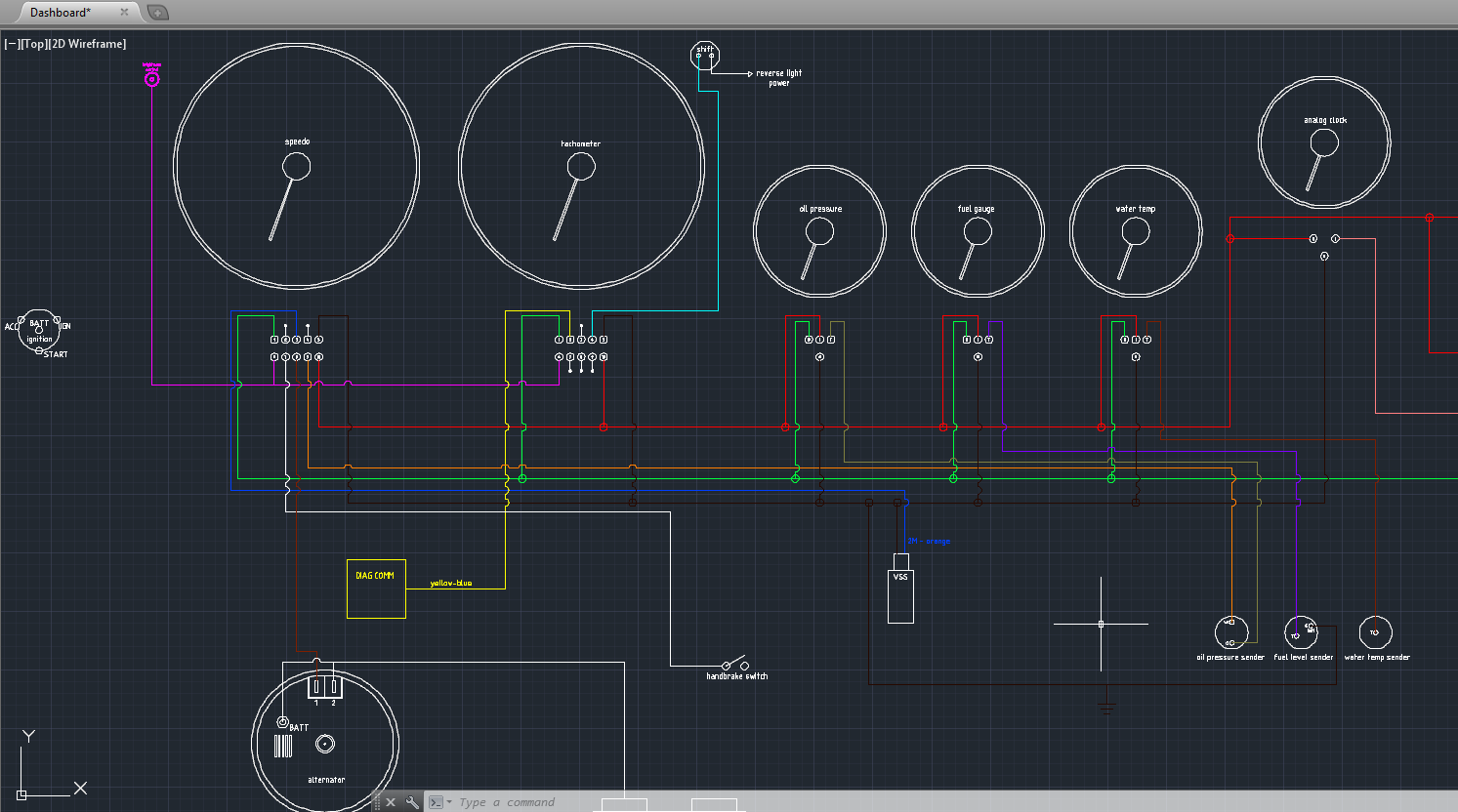 Tachometer, speedometer, fuel level, oil pressure, water temperature and an analog clock are on the way. More on that later.