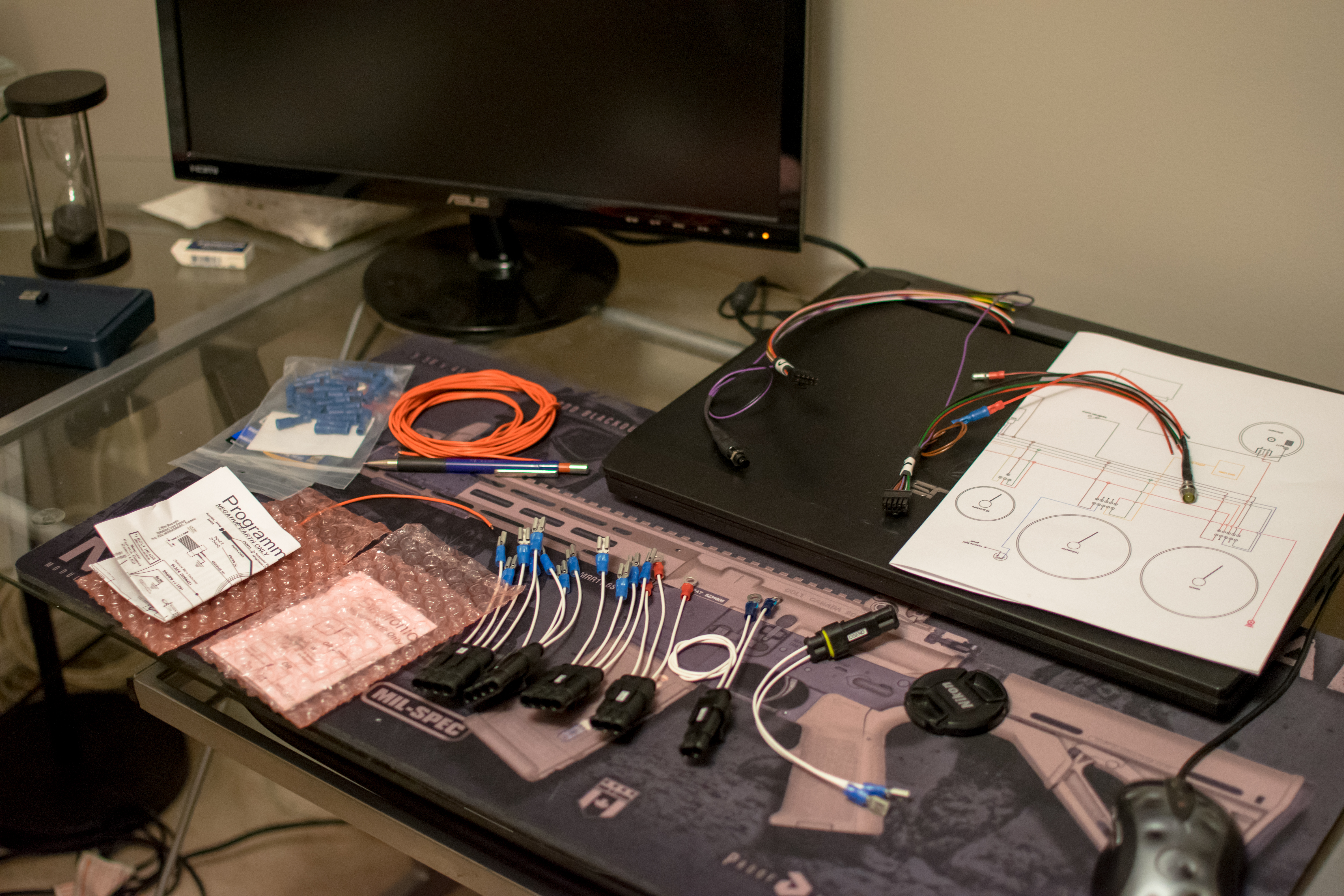 I bench built the wiring harness and installed it in the GT6 over the weekend. Note, the connectors have been swapped for the insulated variety which are not pictured. With the exception of 1/8″ British Standard Pipe thread to 1/8″ National Pipe Thread brass adapters for the ETB oil pressure and water temperature senders, the installation is just about complete.