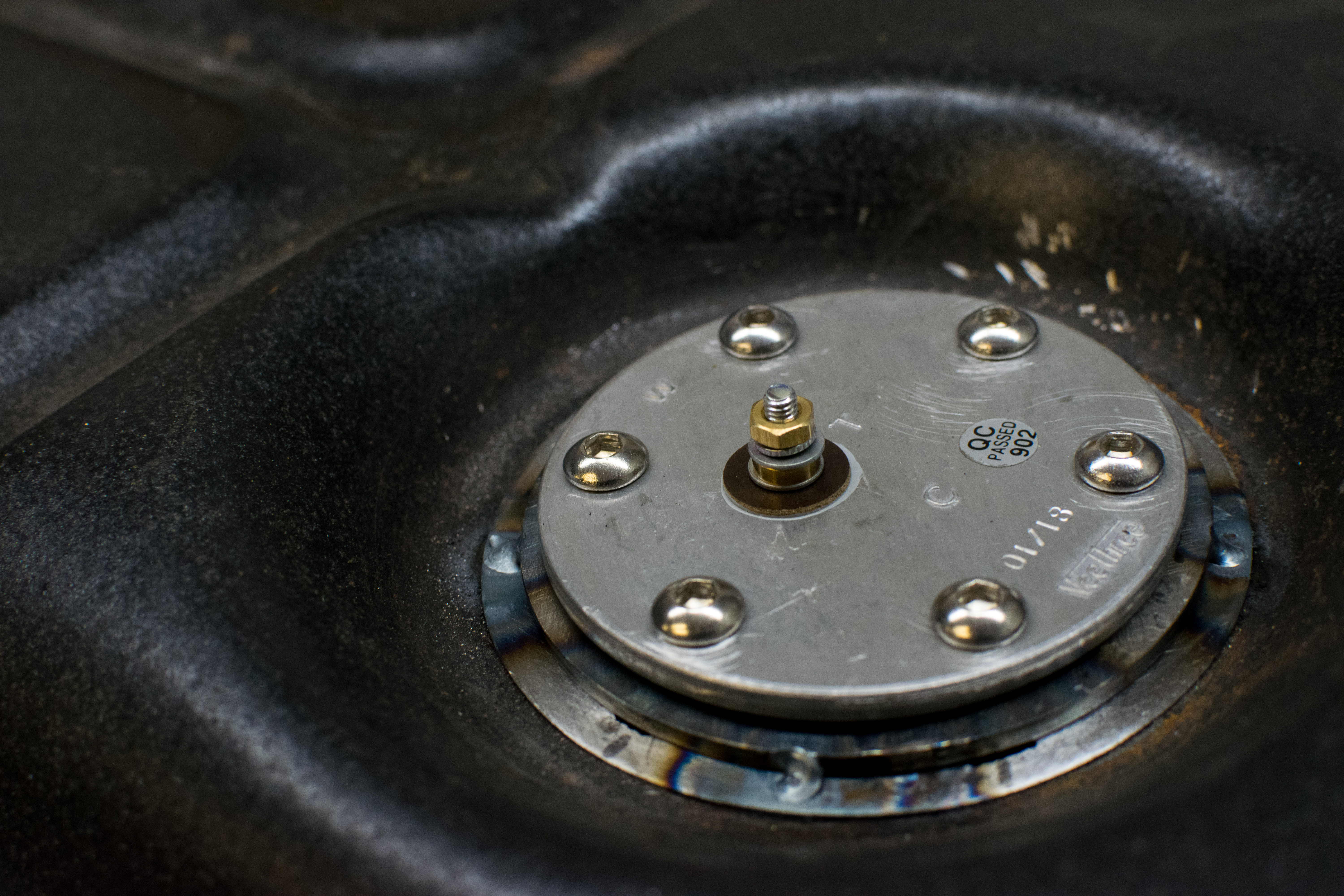 The factory fuel tank is configured to accept a Smith’s style sender unit which unfortunately is not compatible with the ETB sender unit. Adaption was made possible through simple measurements and drawing up a weld-in flange to match the bolt pattern of the ETB unit. The drawing was sent over to a local laser cutting facility for manufacturing and upon receipt was deburred, faced and subjected to tig welding. Nuts were welded to the underside of the flange to accept standard machine screws for securing the unit to the fuel tank. After I tacked the assembly to the fuel tank, Mike finished welding the flange to ensure an air tight seal as his hands work much better magic behind a torch than mine ever could. It is important to note that the new fuel level float arm needed to be bent to match that of the Smith’s sender as pictured above, this was a surprisingly time consuming task to get just right. Overall the modifications turned out really clean and OEM looking. I am extremely happy with what I learned during this project and the overall execution of the fuel tank.