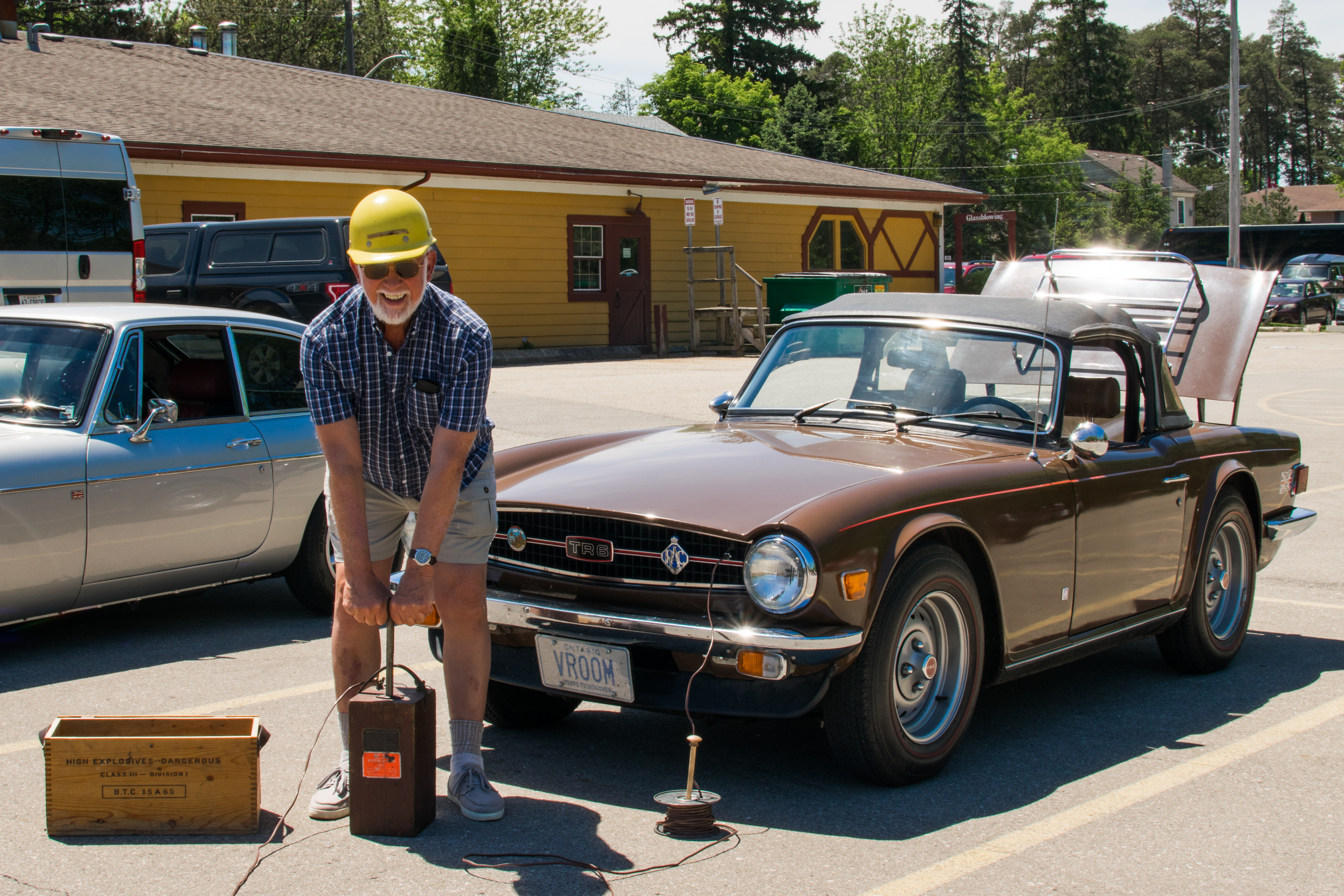 Have you ever witnessed a Triumph TR6 sputter to life using a remote car starter? With modern technology becoming more affordable and user friendly by the day, I’m certain that many of you may respond with “yes”. However, the aftermarket units that can be found at local automotive stores pale in comparison to this period correct solution. Undoubtedly my favourite display of the day was Bob’s genuine CIL dynamite blast box which he brilliantly converted for use as a wired remote car starter. Not only is the blast box itself the definition of classic-cool but the system worked flawlessly to start the vehicle during every demonstration he put on that day… and as you could imagine, there were a couple.