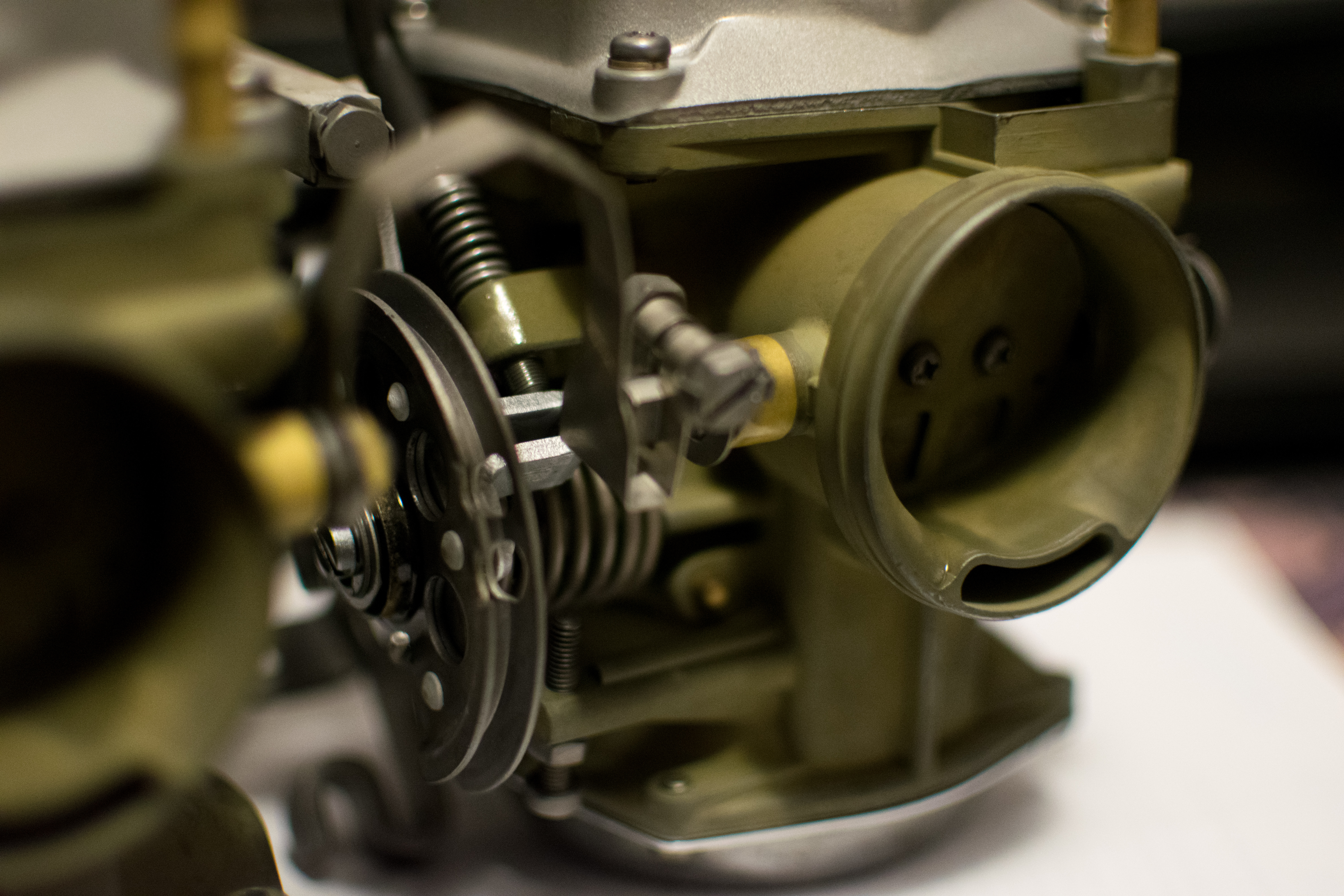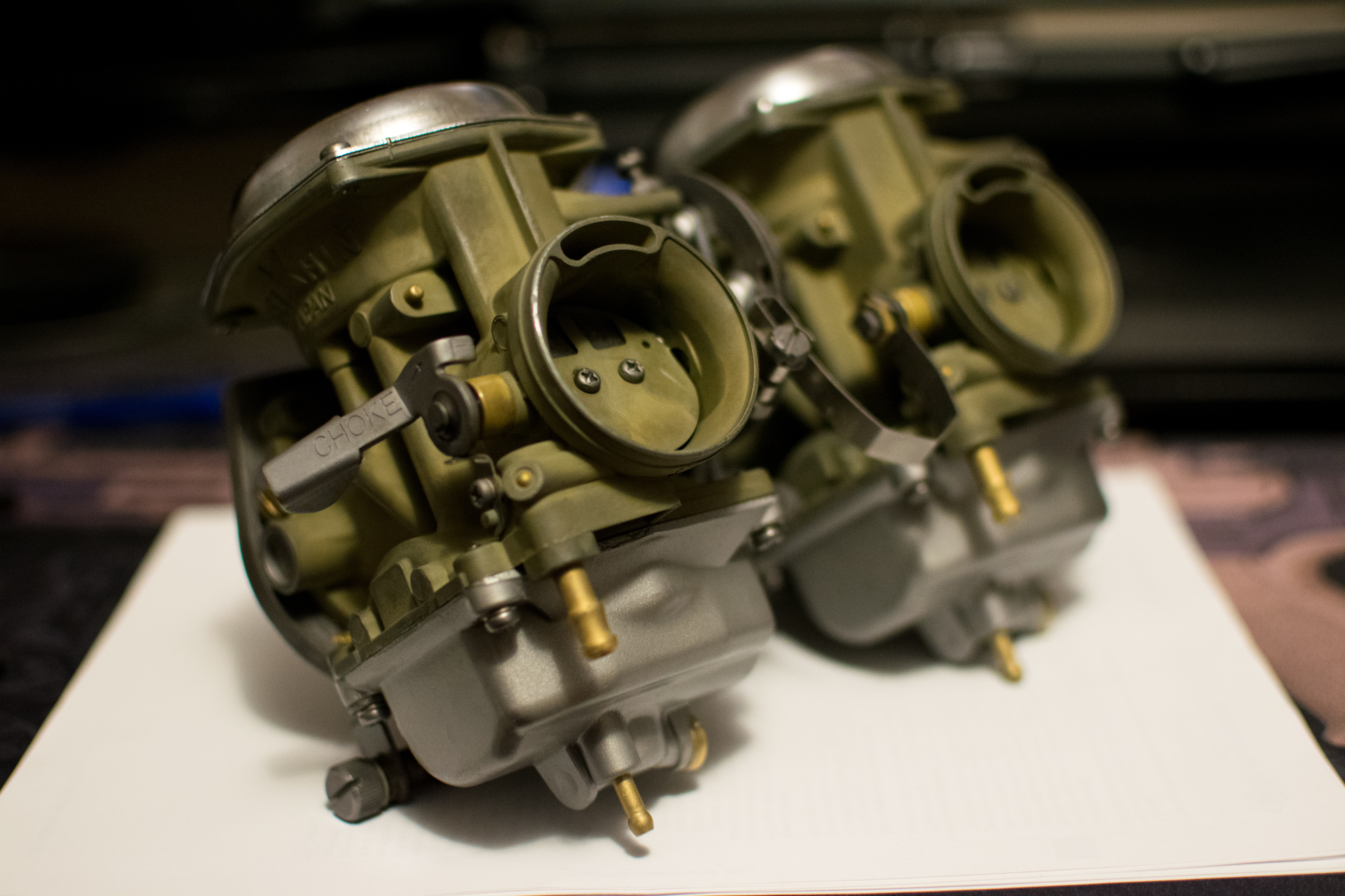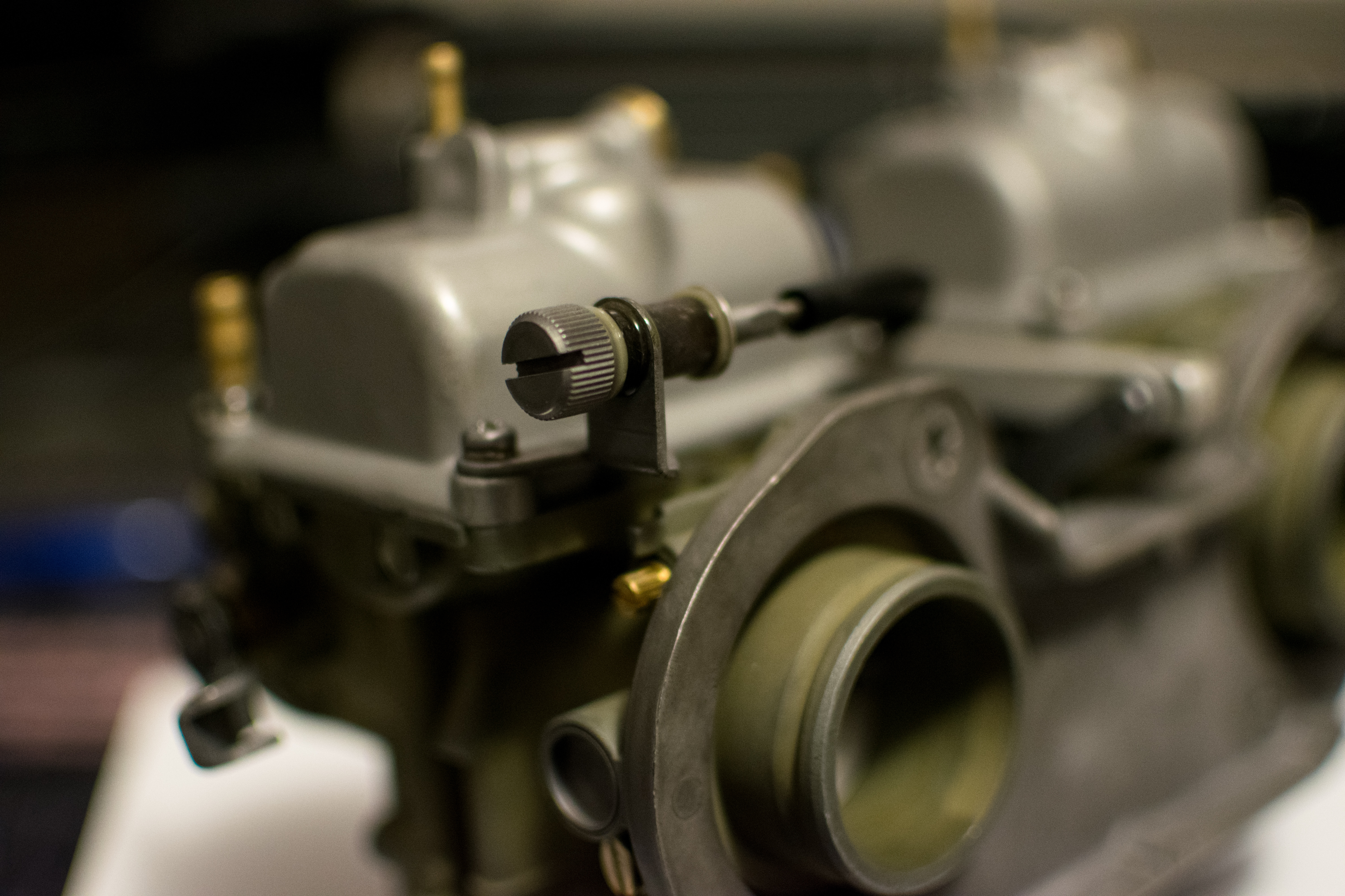 I brought the carbs back home with me and starting setting them up for re-installation. The butterfly flaps were adjusted to ensure they remain completely horizontal under full throttle, the pilot jets were adjusted to allow the bike to idle upon installation and the carbs were mechanically synchronized using feeler gauges to ensure both cylinders will fire in a comparable fashion. Best part about all of this? Everything could be accomplished with a screwdriver and a paperclip. Learning how the different circuits and controls work in harmony with one another has been a humbling experience, it is amazing to see the incredible engineering feats that were accomplished before computers, CAD and modern manufacturing were introduced into the world.