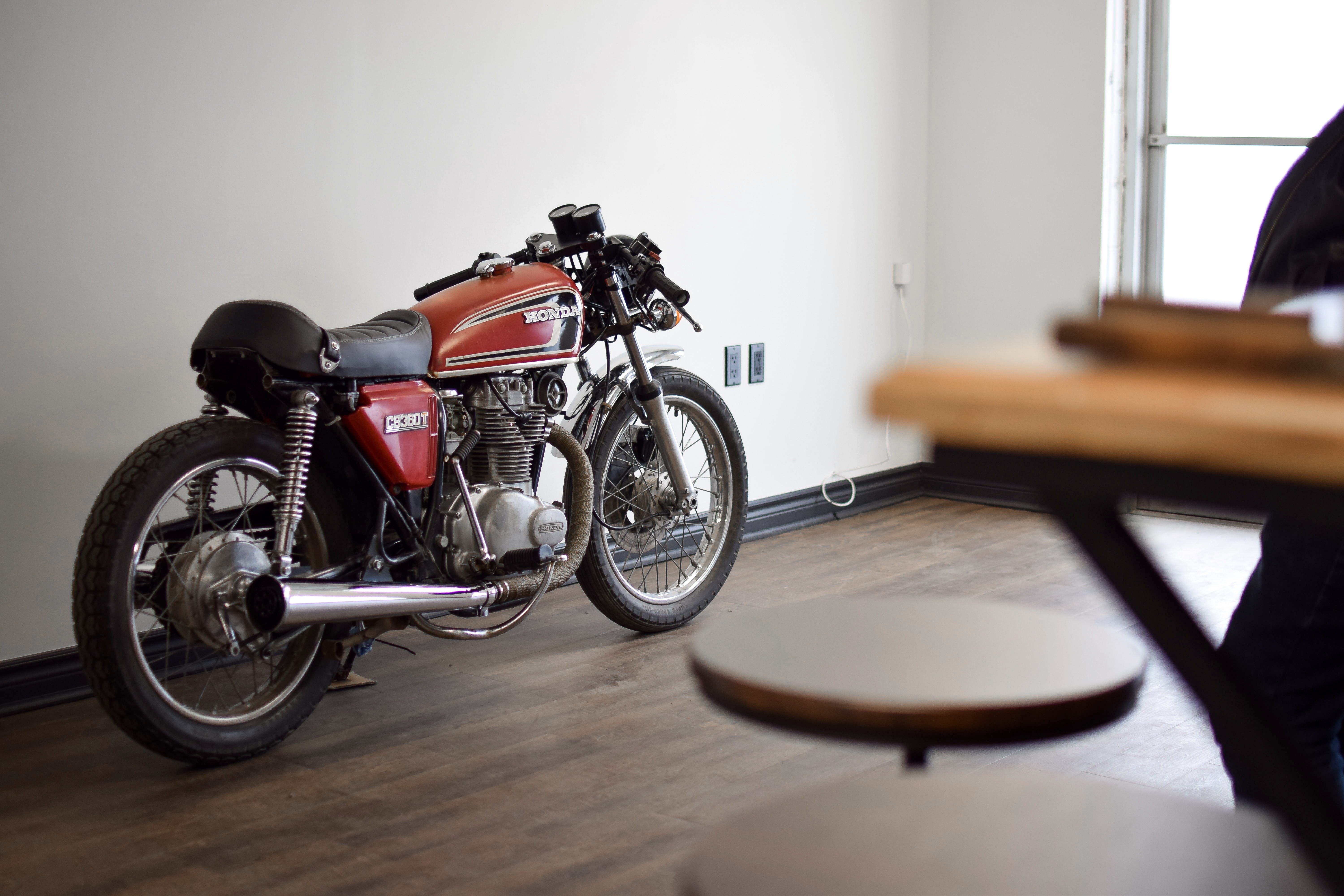 A shout out also goes out to Common Motor in Texas who has supplied me with a wealth of parts and knowledge which have made it possible to be where I am with the project today. All of the parts that have been sitting in boxes for months have since been slapped onto the bike, including a new top triple clamp and mini gauges from Cognito Moto. Their simple and lightweight design really compliments the CB360T’s design traits, turning it into an even more beautiful machine. To add another kick of aggression and fun, Woodcraft clip-ons were installed to give the bike the Cafe appeal and a sporty riding stance. I’ve already dumped several hours getting all of the motorcycles controls tailored to my body and seating position, which has resulted in a really comfortable setup.